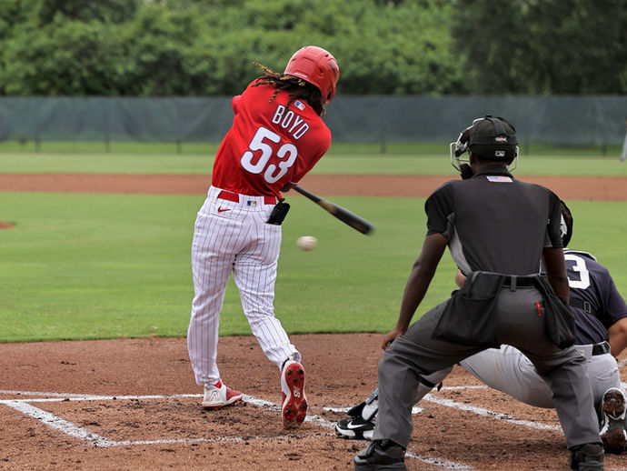 Florida Complex League : last game of regular season Phillies 7 ( 26-29 ) Blue Jays 0 ( 28-27 ) Dunedin, FL Summary : Emaarion Boyd...