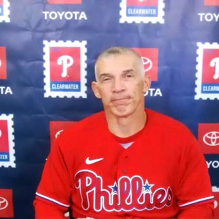 Realmuto now has a blue cast on to let his thumb heal, Joe jokingly said he liked the cast color. Also said JT caught Kintzler today.